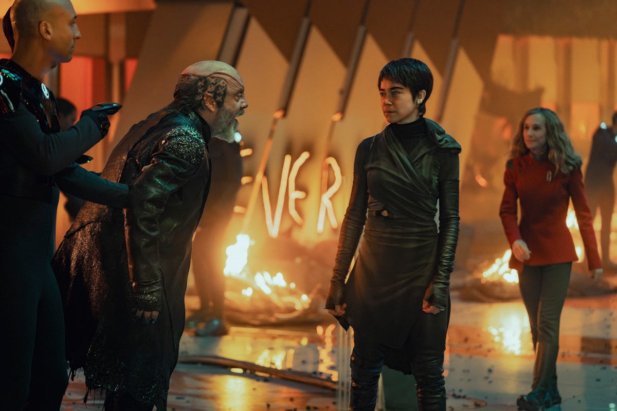 Am Ende versucht Starfleet Academy nicht, uns dazu zu bringen, Nus Braka zu verzeihen, aber es ermutigt das Publikum, zwei Ideen gleichzeitig im Kopf zu behalten: Nus kann böse und brutal sein, aber es ist auch wahr, dass während des Burn Nahla Ake (Holly Hunter) fragwürdige Dinge getan hat – was Anisha Mir’s (Tatiana Maslany) Misstrauen gegenüber der Starfleet vernünftig macht. Und laut SFA Serienleiterin Noga Landau ist Anisha’s Fähigkeit, die Starfleet zu missachten, aber dennoch am Ende ihr Sohn ihnen zu vertrauen, entscheidend für die Themen der Geschichte.